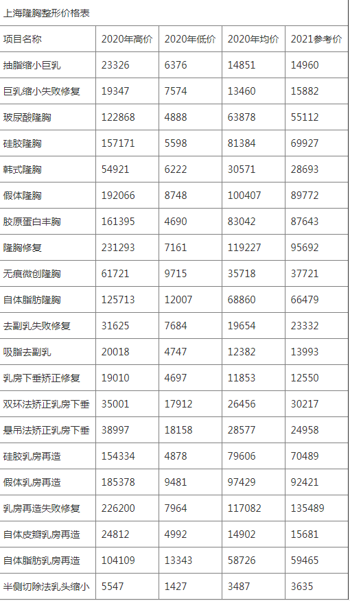 下面小编就来为大家分享一下上海隆胸整形价格: